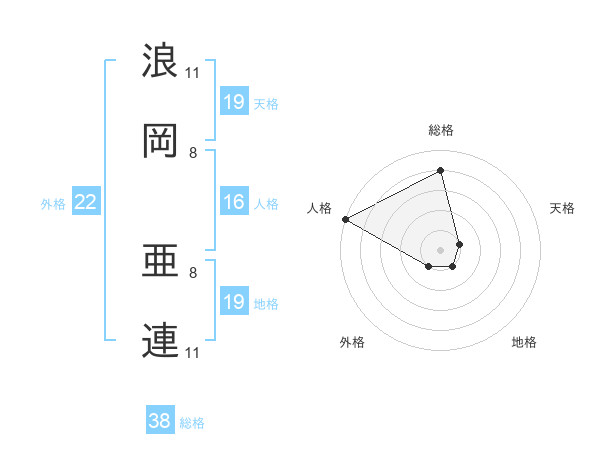 浪岡 亜連さんを姓名の画数から五運を鑑定