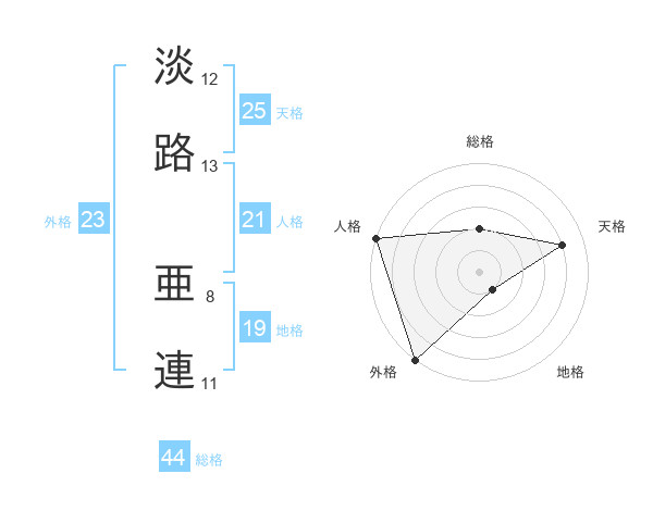 淡路 亜連さんを姓名の画数から五運を鑑定