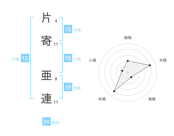 片寄 亜連さんの総格は34画の2点!