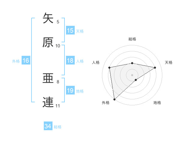 矢原 亜連さんの総格は34画の2点!