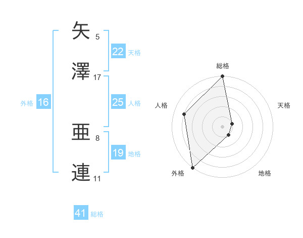 矢澤 亜連さんを姓名の画数から五運を鑑定