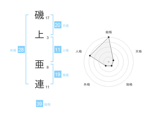 磯上 亜連さんの総格は39画の5点!