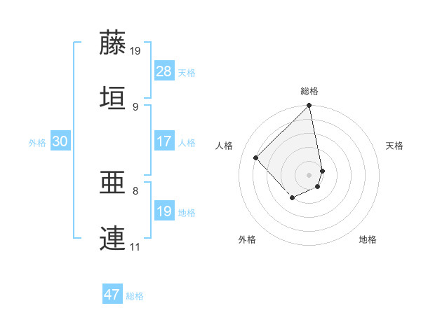 藤垣 亜連さんを姓名の画数から五運を鑑定