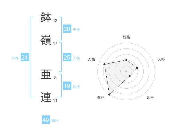 鉢嶺 亜連さんの総格は49画の2点!