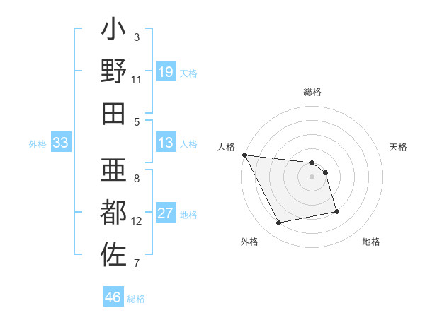 小野田 亜都佐さんを姓名の画数から五運を鑑定