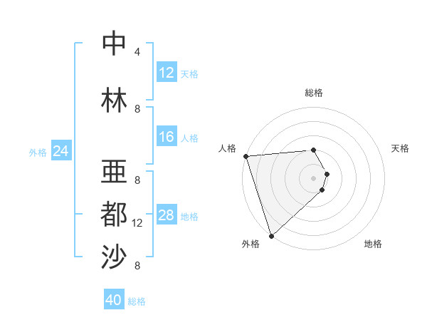 中林 亜都沙さんを姓名の画数から五運を鑑定