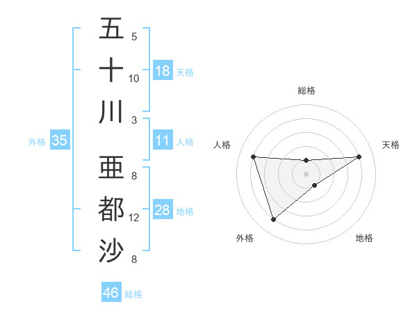 五十川 亜都沙さんを姓名の画数から五運を鑑定