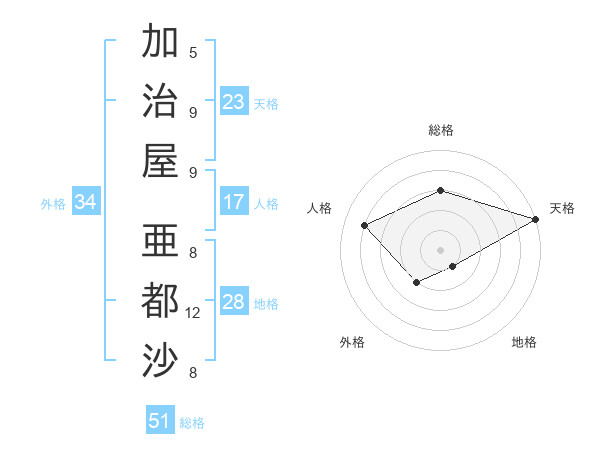 加治屋 亜都沙さんを姓名の画数から五運を鑑定