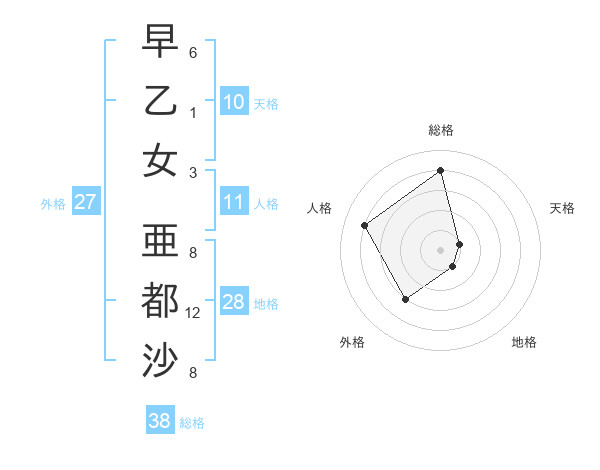 早乙女 亜都沙さんを姓名の画数から五運を鑑定