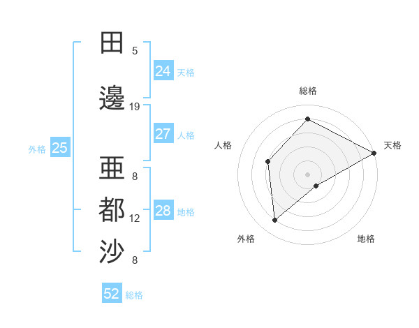 田邊 亜都沙さんの総格は52画の4点!