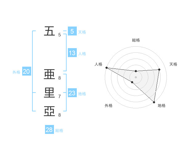 五 亜里亞さんを姓名の画数から五運を鑑定