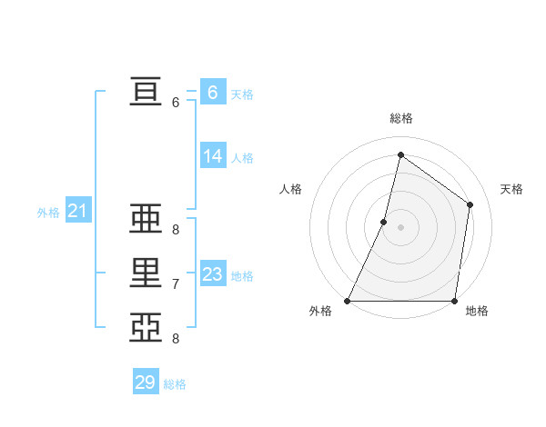 亘 亜里亞さんの外格は21画の5点!