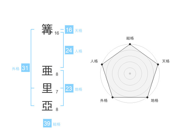 篝 亜里亞さんの総格は39画の5点!