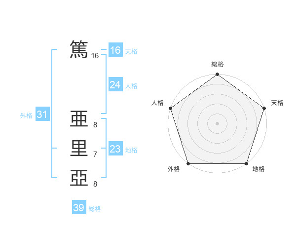 篤 亜里亞さんを姓名の画数から五運を鑑定