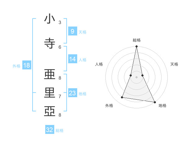 小寺 亜里亞さんの総格は32画の5点!
