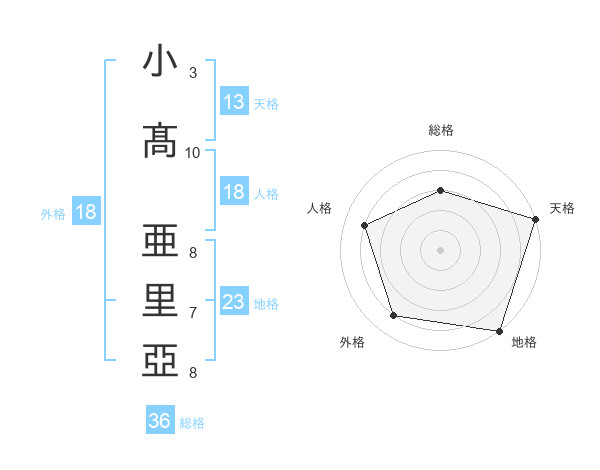 小髙 亜里亞さんを姓名の画数から五運を鑑定
