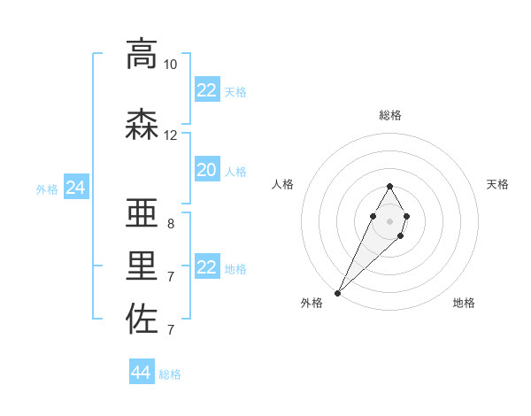高森 亜里佐さんを姓名の画数から五運を鑑定