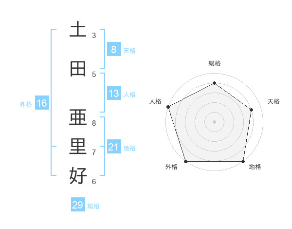 土田 亜里好さんの総格は29画の4点