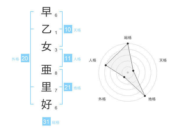 早乙女 亜里好さんを姓名の画数から五運を鑑定