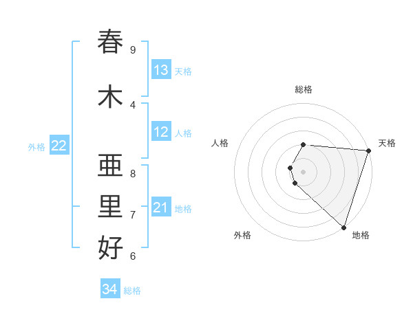 春木 亜里好さんを姓名の画数から五運を鑑定