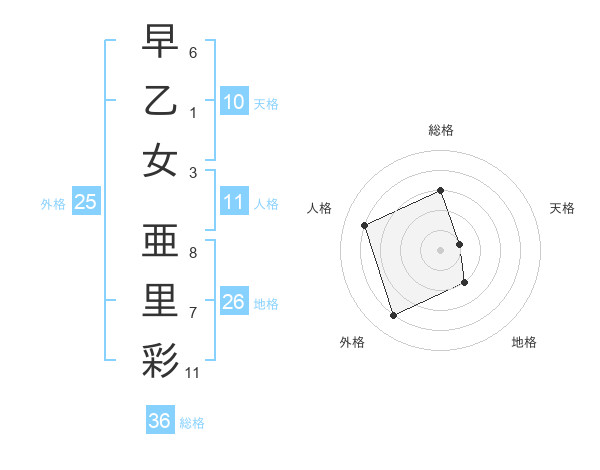 早乙女 亜里彩さんを姓名の画数から五運を鑑定