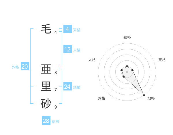 毛 亜里砂さんを姓名の画数から五運を鑑定
