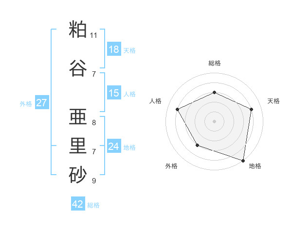 粕谷 亜里砂さんの地格は24画の5点!