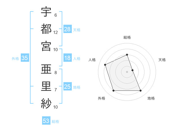 宇都宮 亜里紗さんを姓名の画数から五運を鑑定