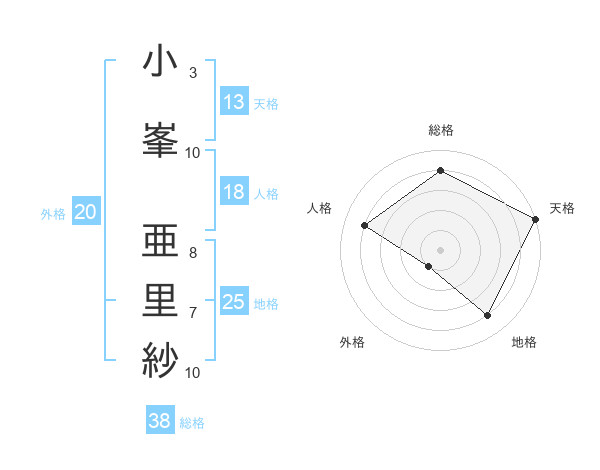 小峯 亜里紗さんを姓名の画数から五運を鑑定