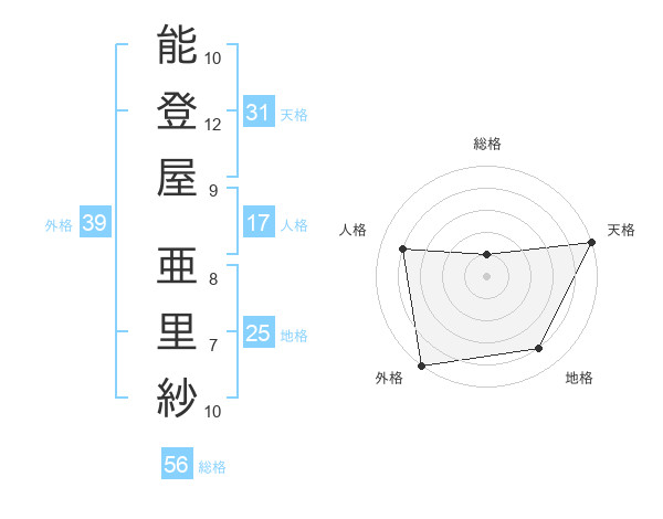 能登屋 亜里紗さんを姓名の画数から五運を鑑定