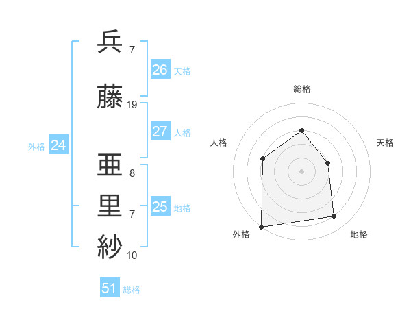 兵藤 亜里紗さんを姓名の画数から五運を鑑定