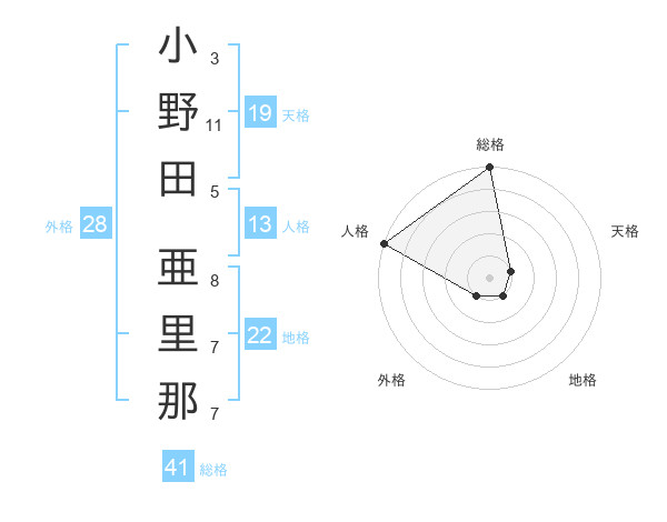 小野田 亜里那さんを姓名の画数から五運を鑑定