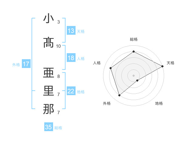 小髙 亜里那さんを姓名の画数から五運を鑑定