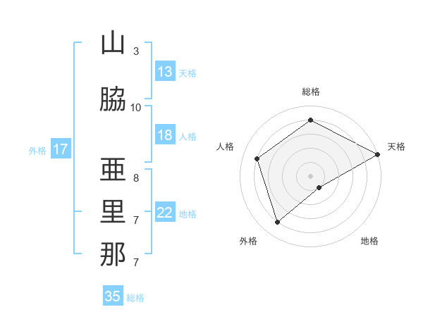 山脇 亜里那さんの天格は13画の5点!