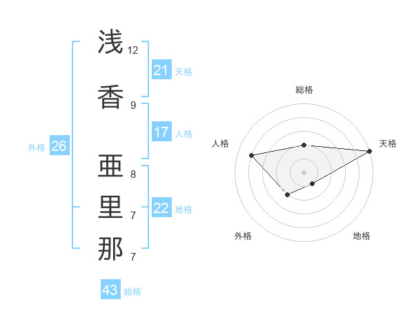 浅香 亜里那さんの天格は21画の5点!