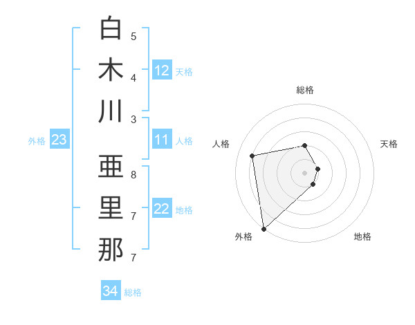 白木川 亜里那さんを姓名の画数から五運を鑑定