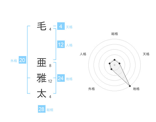 毛 亜雅太さんを姓名の画数から五運を鑑定
