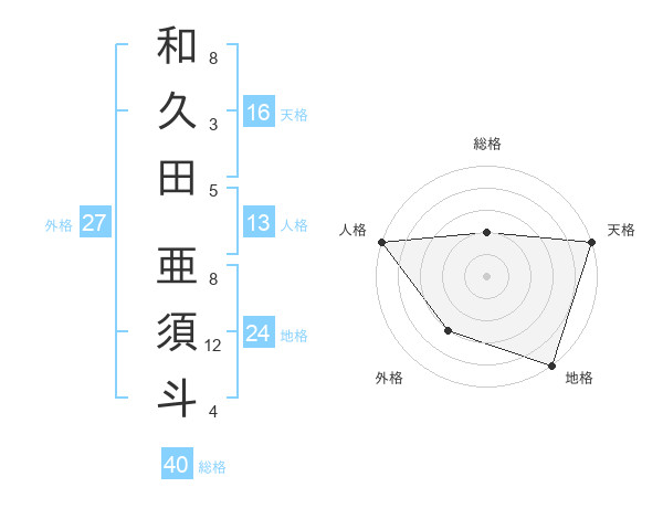 和久田 亜須斗さんを姓名の画数から五運を鑑定