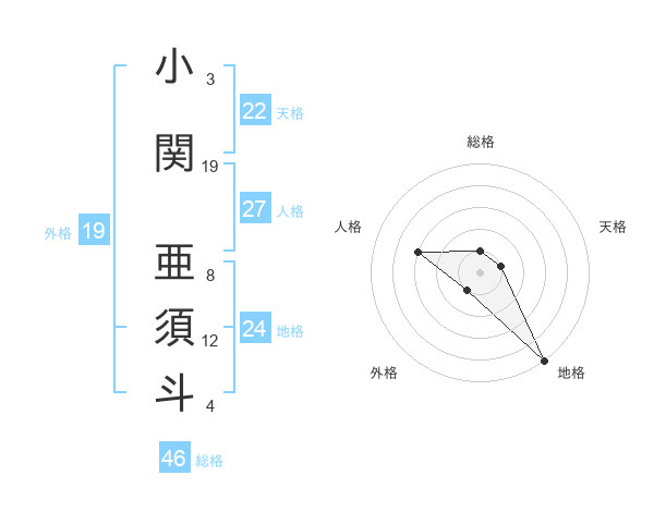小関 亜須斗さんの総格は46画の1点!