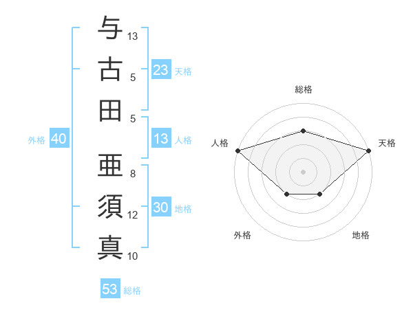 与古田 亜須真さんを姓名の画数から五運を鑑定