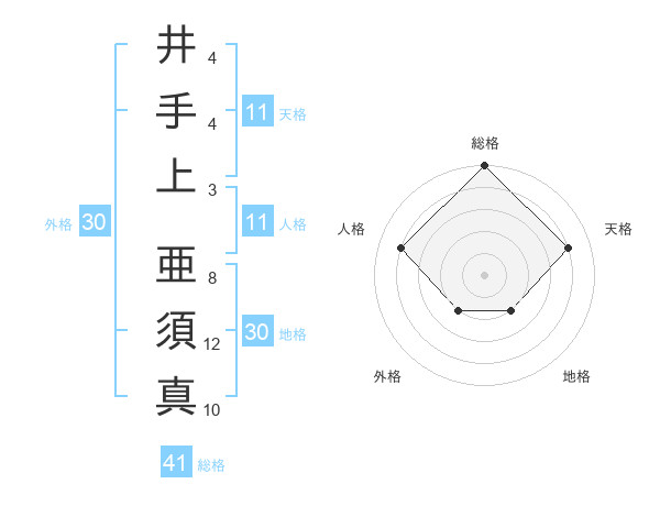 井手上 亜須真さんの総格は41画の5点!