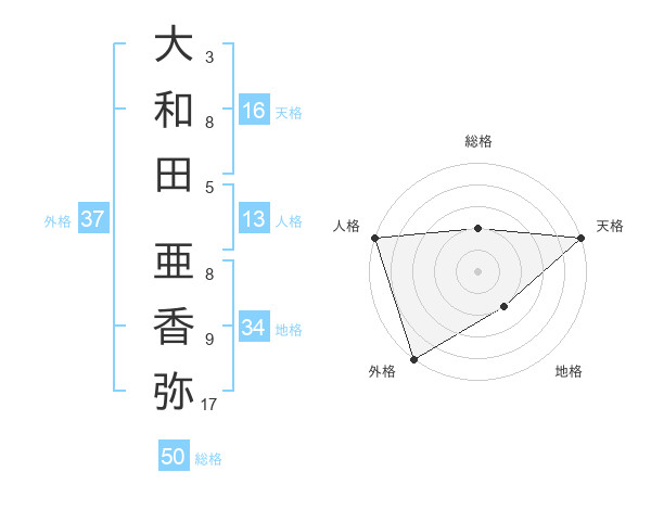 大和田 亜香弥さんの外格は37画の5点!