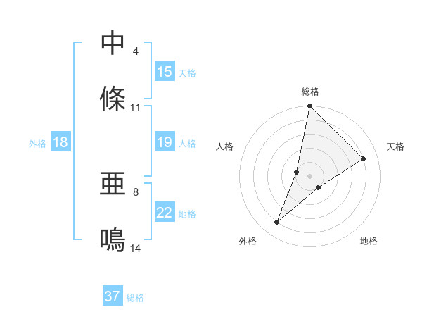 中條 亜鳴さんの総格は37画の5点!