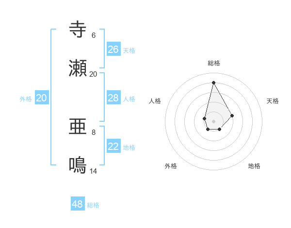 寺瀬 亜鳴さんの総格は48画の4点!