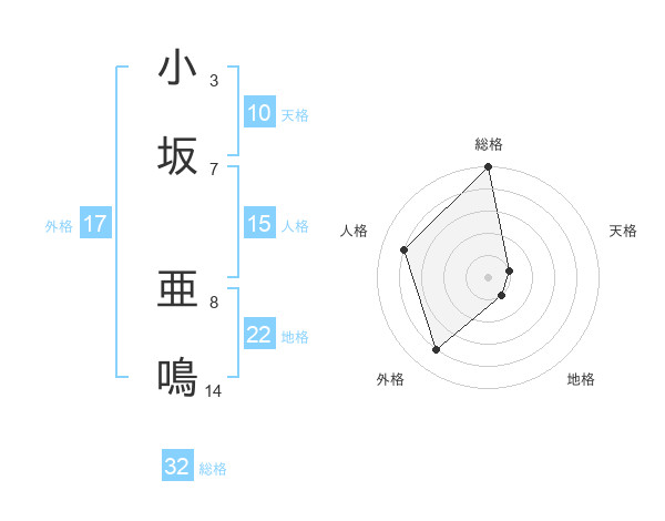 小坂 亜鳴さんの総格は32画の5点!