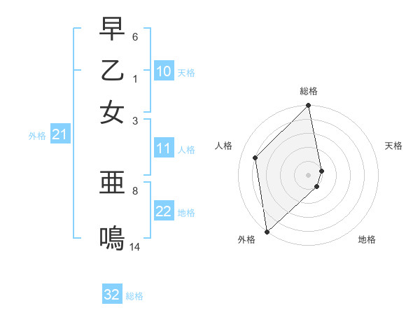 早乙女 亜鳴さんを姓名の画数から五運を鑑定