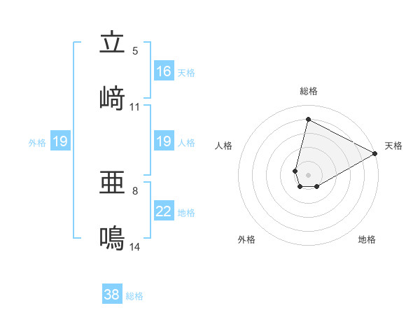立﨑 亜鳴さんを姓名の画数から五運を鑑定