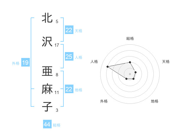 北沢 亜麻子さんを姓名の画数から五運を鑑定