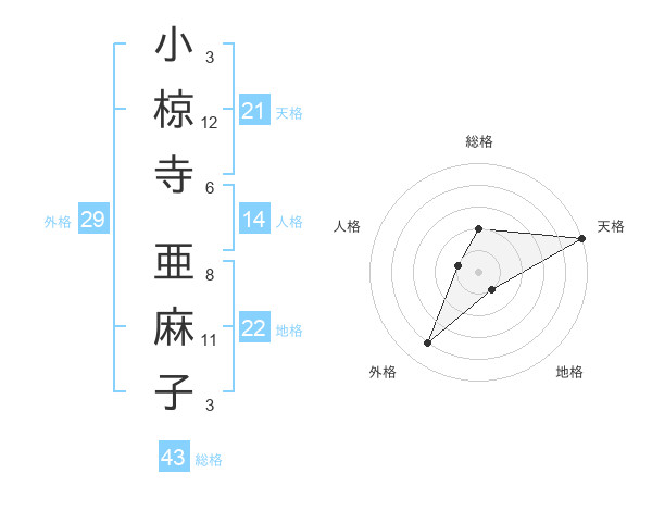小椋寺 亜麻子さんの天格は21画の5点!
