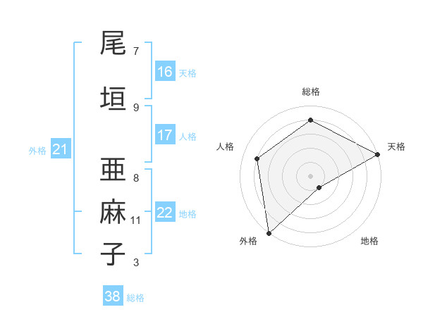 尾垣 亜麻子さんを姓名の画数から五運を鑑定